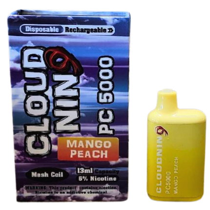 Cloud Nin9 Mango Peach. Featuring PC5000 5% Nicotine Disposable Vape. Enjoy a smooth puff with great flavor.