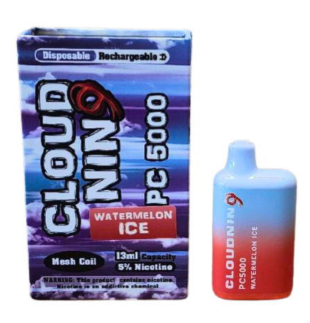 Cloud Nin9 Watermelon Ice PC5000 5% Zero Nicotine Disposable Vape. Enjoy a smooth puff with great flavor.